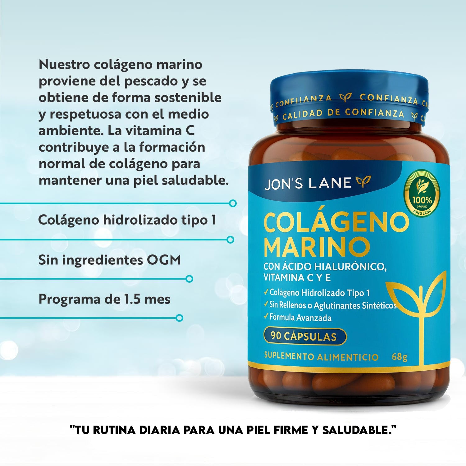 Desde que lo tomo cada mañana noto la piel más firme, luminosa y sin líneas visibles.